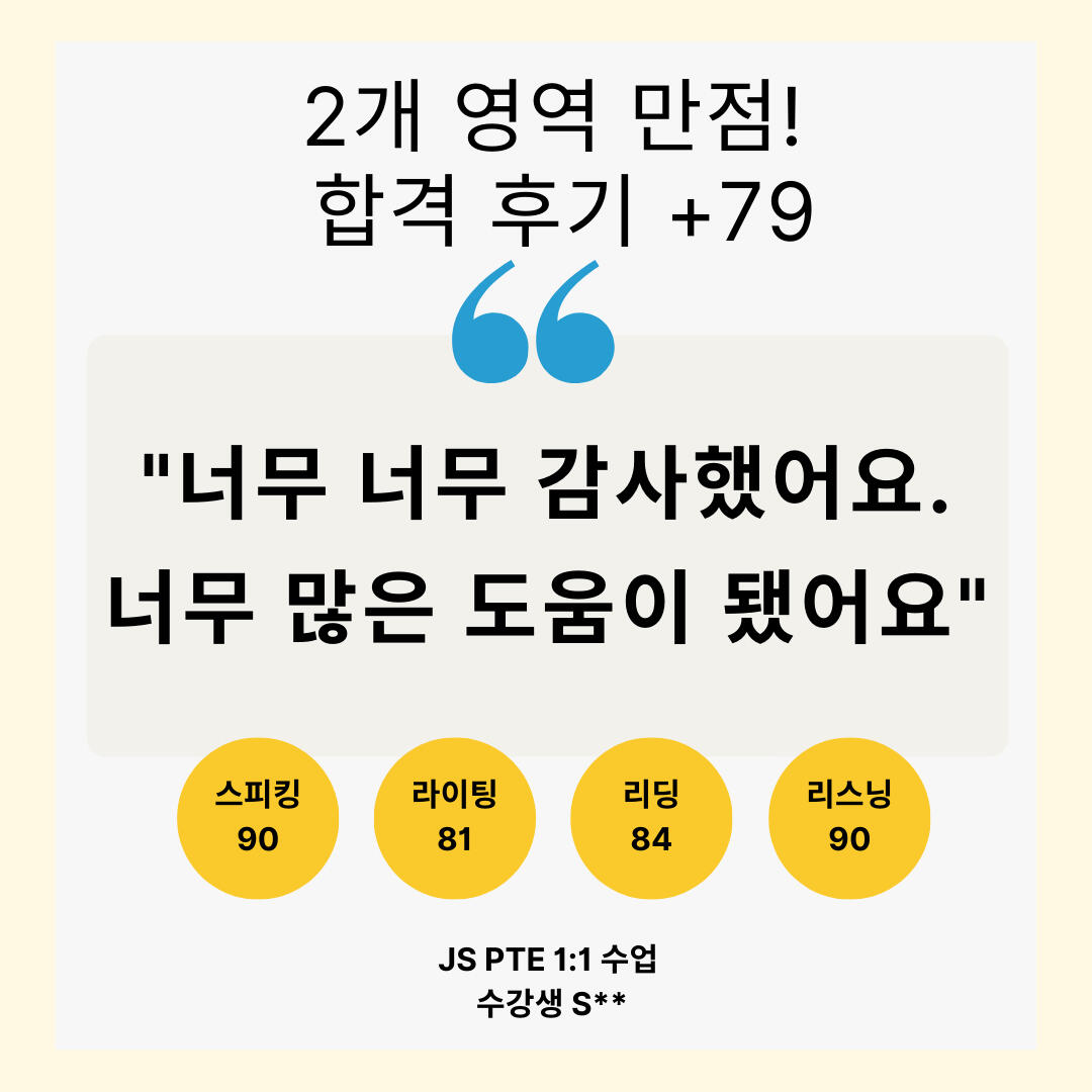 합격생들도 다시 찾는 수업! 지인에게 추천하는 수업! JS PTE 입니다.